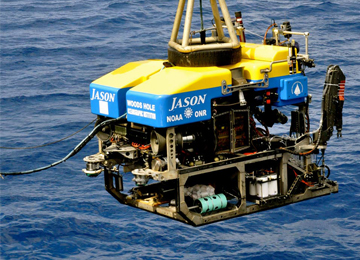 The Remotely Operated Vehicle (ROV) Jason (Fig. 4) will be connected to the ship with a fibre optic cable so that scientists and operators on the ship can drive it around on the seafloor, observe the new volcanic features and sample rocks and magma fragments called pumice.