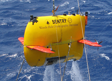 The AUV Sentry (fig. 5) will be programmed on the ship to investigate regions of the volcano, placed in the ocean and will zoom around the seafloor taking photos, collecting information about the depth of new volcanic deposits and also measuring the chemistry of water.