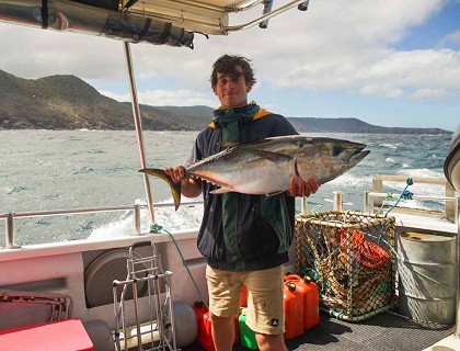 Along the way we dropped an adventurous artist called James off to make a wilderness camp on De Witt island and caught a nice fat Tuna and many flathead and squid.