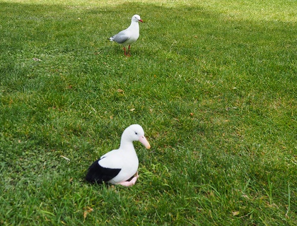 The albatross with no name was last seen relaxing in a park in Hobart, meeting other birds.