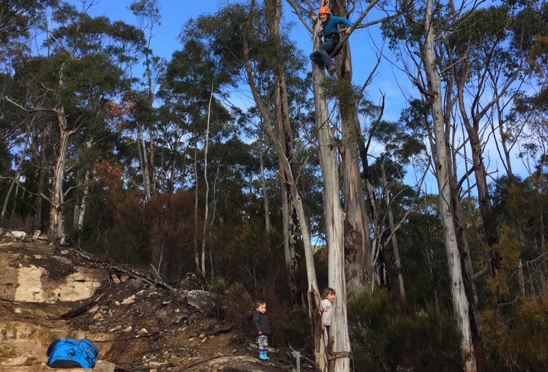 Not a lot to report today. We're halfway through the expedition. On the way from the Julius River rainforest to the wet southern forests is my house! So I dropped in to dry and clean all the gear for the next stage of our investigation. Nicola has been seeing so much more of our children that she a climbed a tree for a mini break!