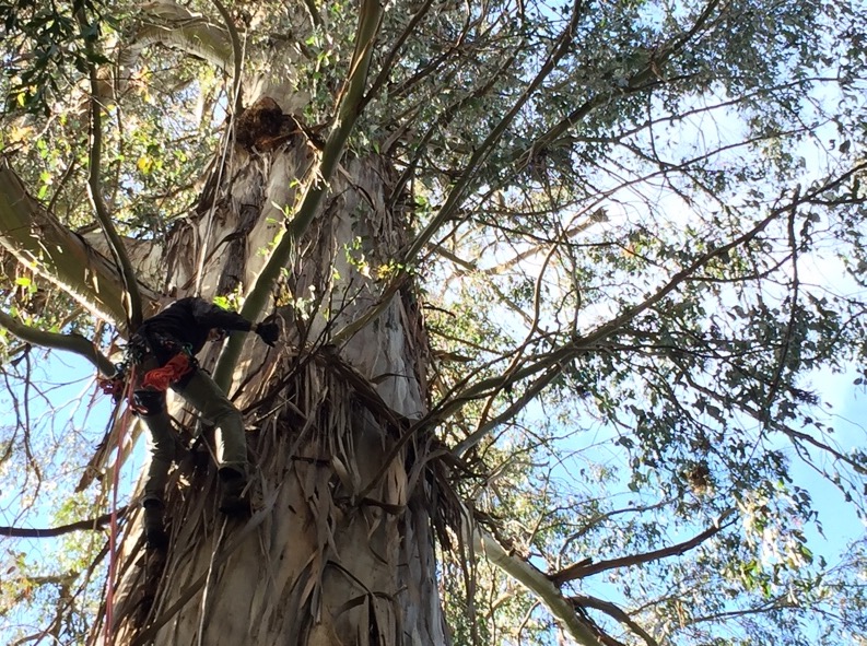 Up, up, up we go. Yoav came down with Steve Pearce from the Tree Projects history morning to help get into a really enormous tree in the wet eucalypt forest here.