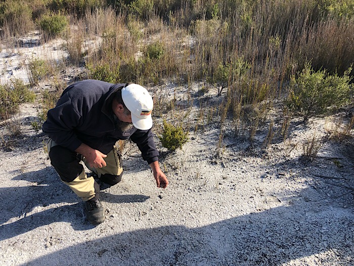 Fiona made a find of a nearly complete skeleton of a sea eagle just behind the beach. It is hard to be sure but it could have been a young fledgling from the nest that wasn’t too far away. James explained how even one of the biggest bones, the femur, is very light compared to a mammal (like us).