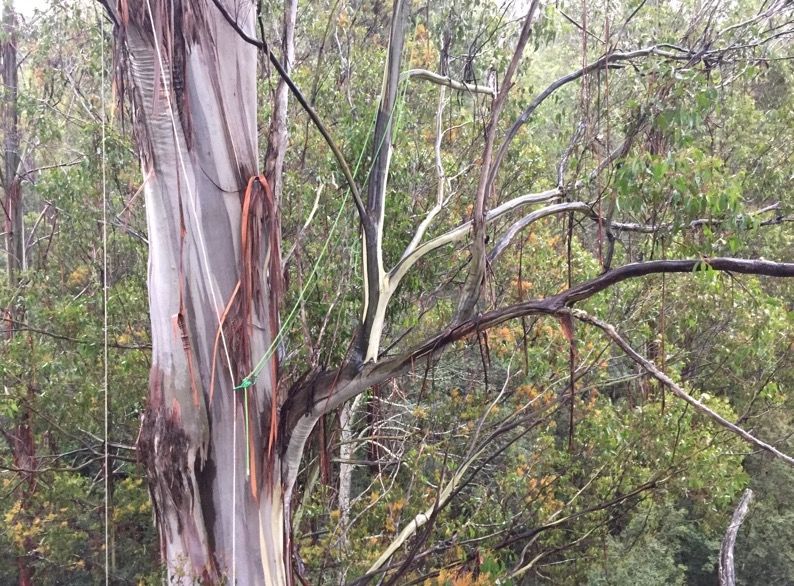 With nothing helpful to do for Dan I abseiled to the ground and got started on breakfast. Jimmy from BeardsOn came in to work with Steve on promoting a forest regeneration project in the Daintree rainforest of North Queensland. The rain kept coming down so it wasn't until late morning that there was any movement to re-enter the tree. Dan came down in the meantime and warmed up with a cuppa and food. Dr Tim Wardlaw from the University of Tasmania School of Biological Sciences also came down to visit base camp.