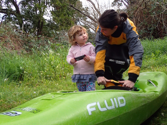 The changes on the river have come quickly over the past few days since the first sighting of a paddock. I woke up this morning with the hum of the highway traffic around the next river bend and the buzz of a chainsaw getting to work somewhere over the hill. I floated out onto the main current and drifted along with barely a paddle stroke until the point where the river buts up against the Lyell Highway. Here I was meeting Nic (my wife and expedition coordinator extraordinaire) and Sam (paddler and river enthusiast) to make the journey down to New Norfolk a team effort. My parents came up with a couple of extra little helpers who I haven't seen for a while. The littlest helper was so excited to see his dad with fuzzy facial hair that he cried. Hope (pictured) thought it was too cold to come on the expedition but maybe another time.