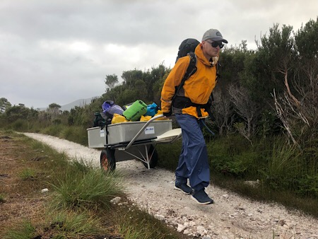 James and I are in position at the southern end of Moulters Inlet after a paddle from Melaleuca in a double sea kayak. Roaring 40’s Kayaking have a fleet of kayaks down here to take visitors on tours around Bathurst Harbour and Port Davey. At this time of year the weather is unpredictable and days short so there are no tours running. Luckily for us it’s been calm and mild all day. The water coming off he mountains is stained a dark tea colour from passing through and collecting tannins for the peat soils. The paddles disappear under just 30cm of water. We wondered how sea eagles would go hunting if they couldn’t easily see fish. Then a juvenile sea eagle flew past. It must be okay still.