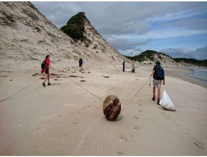 We are all a bit sore after a big day, cleaning up Stephens Bay! it was a big one, almost 2km long with a big dune behind it.