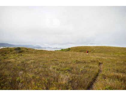 To get there we had to motor back to Spain Bay and then go ashore in the dinghy, scramble across the slippery rocks and walk a few kilometres across the mountains in the rain.