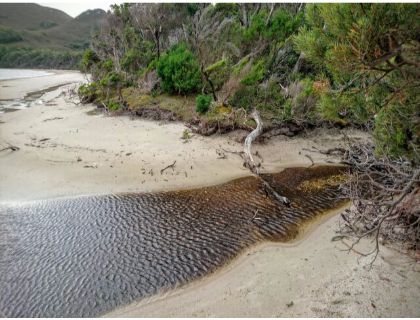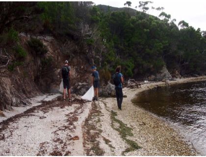 Later we woke (again) to a very windy day so we motored over to Hannants Inlet to clean some beaches.