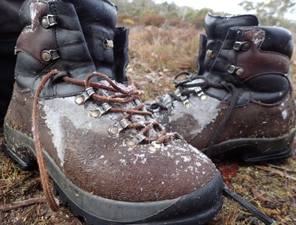 About 8km and I'm camped between two partly frozen lakes northwest of Traveller's Rest Lake. At one point when I stopped to check my location with map and GPS I noticed some burrowing crayfish holes. I'm certain of it Alastair and their grid coordinates are UTM/WGS84 0438189, 5345543. A little discovery for Friday. In the tent at 5.30pm now and it's already 0 degrees outside. Brrr.