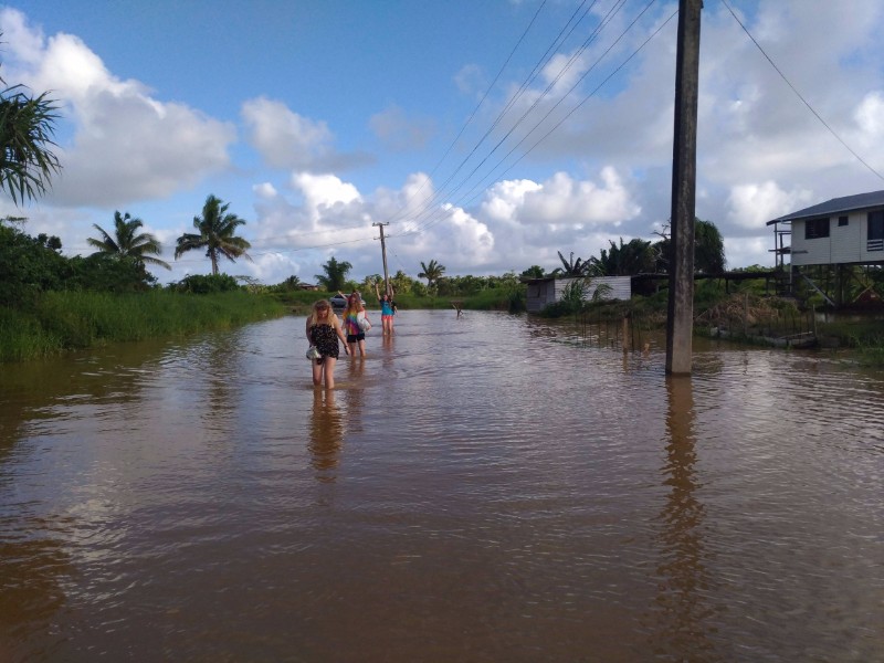 Once we arrived back in Navua we ate lunch and rode back to Pacific Harbour in the back of a truck. It was very bumpy and we slid all around the back when we turned the corners. However, we didn’t make it all the way back to Ben and Mere’s house in the truck as the road was flooded. The truck refused to go through, so we had to walk through knee deep water with all of our luggage. The floor was sharp with rocks which made the 80 metre walk quite painful with no shoes, where some of us fell over into the water! (Gabby)