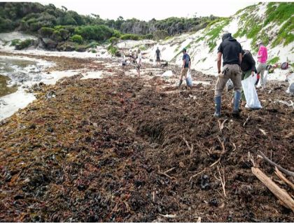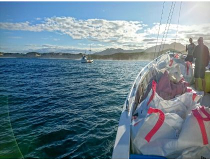 We finally anchored just east of Hobbs Island. Lachy quickly put a fishing line in and got a bit cross when he could only catch barracouta (his least favourite fish). We all got a wake-up on the whiteknuckle zodiac dinghy ride zooming across the waves of the bay to our first beach. "Green Island main". The team has been to this small beach 4 times in the past and it is still very dirty. Ula had been telling us about this beach all week, she described how when they first visited and stepped ashore everyone was in shock when they saw the thousands and thousands of rubbish pieces threaded through the thick carpet of SLIMY ROTTING KELP that covers most of this beach.