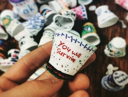 The styrofoam cups that kids drew on were sent down to the bottom of the ocean, where they were crushed to a fraction of their original size, the cup pictured in particular was popular among the scientists for the careful balance of cheerfulness and morbidity.