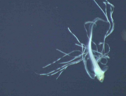 The range of animals we have observed on our dives so far include chemosynthetic microbial colonies that derive their energy from the chemistry of hot water venting from the seafloor (as opposed to the photosynthetic life we are accustomed to at the surface), scavengers that search the seafloor food, and animals of all types that cling to the rocks and feed on tiny animals floating by on the currents.
