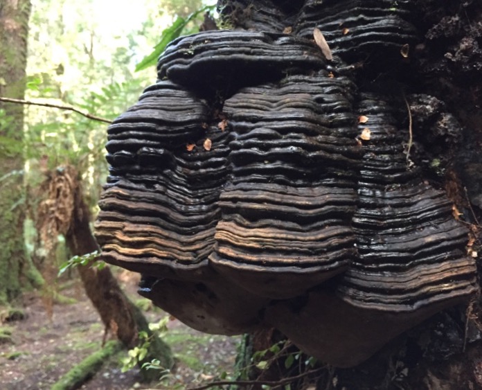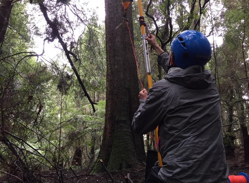 The ground is lumpy and bumpy because the geology here is limestone or dolomite. The weathering of thead rock can create caves and sinkholes. Both are here! After a circuit looking at myrtle, blackwood and sassafras candidates we chose a gorgeous straight myrtle right behind base camp.